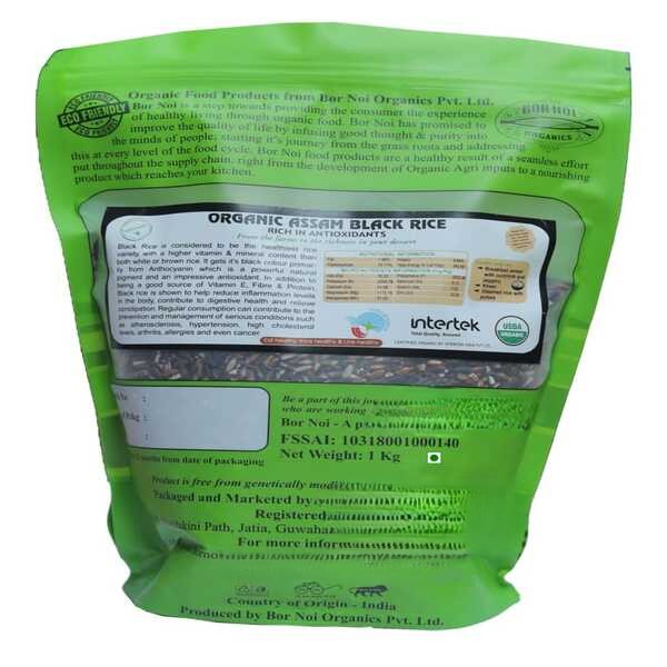 342 Packet Net Weight : 1 Kg Description : Assam Black Rice, Also Known As Chak Hao, Is A Unique, Nutrient-rich Rice Variety Native To Assam, India. It Is Characterized By Its Deep Black Color, Which Comes From Anthocyanins, Powerful Antioxidants. This Rice Is Known For Its Nutty Flavor, Soft Texture, And High Nutritional Value, Including Being A Good Source Of Iron, Fiber, And Vitamin E. The Anthocyanins In Black Rice Are Powerful Antioxidants That Can Help Protect The Body Against Cell Damage And Inflammation. Black Rice Is Associated With Several Health Benefits, Including Improved Heart Health, Digestive Health, And Immune Function, As Well As Potential Anti-aging Properties. Location : Assam, India