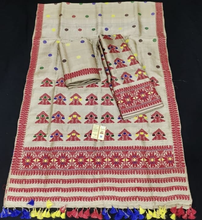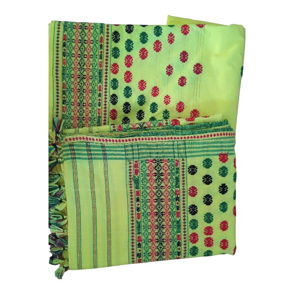 1705 Set Description : Masraj Cotton Likely Refers To Mashru Fabric, A Unique Indian Textile Blending Silk And Cotton. Mashru Mekhela Chadar Combines This Luxurious, Dual-textured Fabric With The Traditional Assamese Attire. The Outer Surface Boasts The Sheen Of Silk, While The Inner Surface Provides The Comfort And Breathability Of Cotton. This Blend Offers A Unique Combination Of Elegance And Comfort, Making Mashru Mekhela Chadar A Distinctive Choice. It Holds Cultural Significance And Is Suitable For Various Occasions. Location : Assam, India