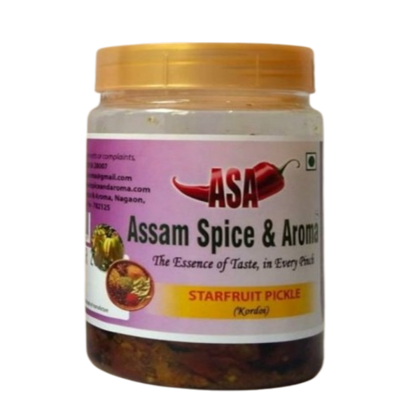 182 Bottle Net Weight : 200 Gram Description : Starfruit Pickle (kamrakh Ka Achar Or Kordoy Achar) Is A Tangy, Spicy, And Sometimes Sweet Indian Condiment Made From Starfruit (carambola) And Various Spices, Often Preserved In Oil Or Vinegar. It Offers A Unique Flavor And May Provide Health Benefits Like Boosting Immunity, Aiding Digestion, And Supporting Heart Health. Starfruit Pickle Is Versatile And Can Be Enjoyed As A Side Dish Or Flavor Enhancer In Various Meals. Location : Assam, India