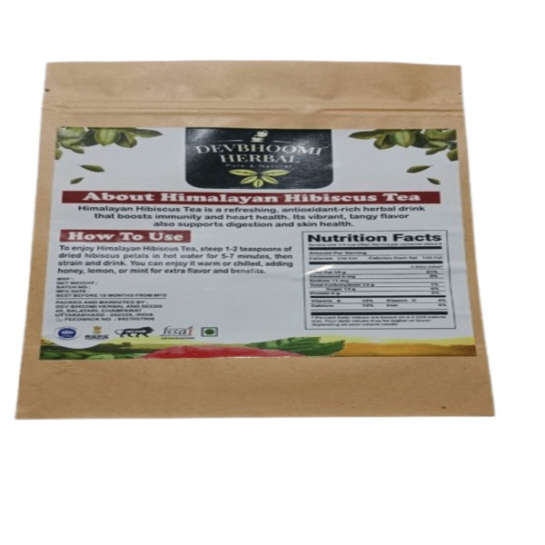 263 Packet Net Weight : 100 Gram Description : Himalayan Hibiscus Tea Is A Vibrant, Reddish-pink Herbal Tea Made From The Dried Calyces Of The Hibiscus Flower, Often Blended With Other Ingredients Like Kangra Green Tea, Cinnamon, Stevia, And Licorice. It Is Known For Its Tart, Tangy, And Slightly Sweet Flavor, Reminiscent Of Cranberries. The Tea Is Rich In Antioxidants, Vitamins, And Minerals, And Is Enjoyed Both Hot And Cold. Location : Uttarakhand, India