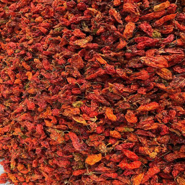 3500 Kg Net Weight : 1 Kg Description : Dried King Chili, Also Known As Bhut Jolokia Or Ghost Pepper, Is A Highly Pungent Chili Pepper Native To Northeast India, Particularly Assam, Nagaland, And Manipur. It Is Known For Its Intense Heat (over 1 Million Scoville Heat Units) And Distinct Smoky, Fruity Flavor. The Dried Form Is Characterized By Wrinkled Skin And A Fiery Aroma. It Is A Culinary Staple, Used In Pickles, Spice Blends, And Flavoring Oils, And Is Also Valued For Medicinal And Cultural Significance. Location : Assam, India