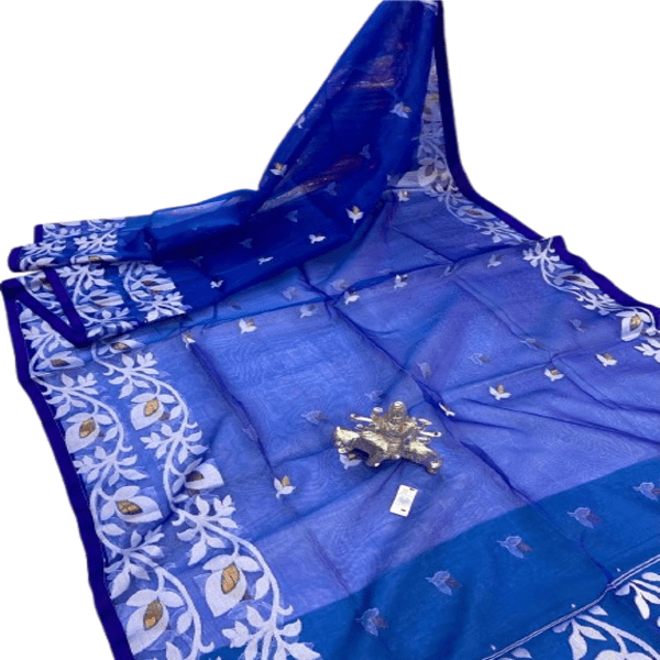 A muslin jamdani saree is a premium handwoven fabric, traditionally made from the finest, softest cotton muslin. Originating in the Bengal region, these lightweight and translucent sarees feature intricate, vibrant motifs woven directly into the fabric using a supplementary weft technique. This labor-intensive process, which can take several months, results in patterns that appear to float on the fabric. Renowned for its elegance and breathable quality, this textile art received UNESCO recognition in 2013 and is a symbol of cultural heritage in both Bangladesh and West Bengal. Location : West Bengal, India