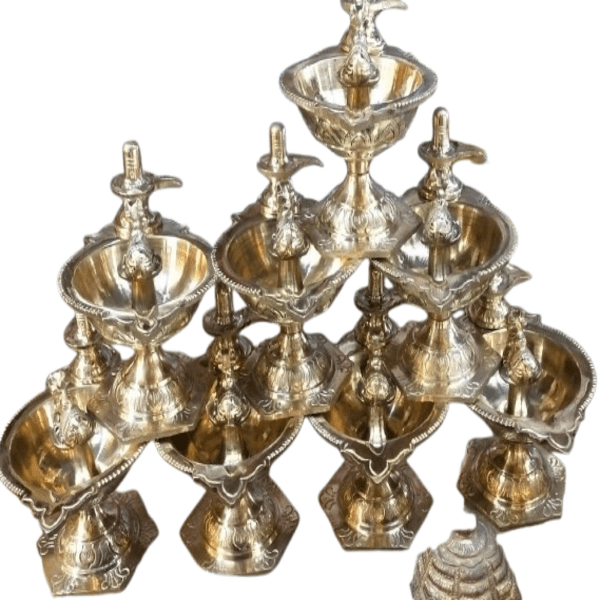 1430 Piece Description : A Traditional Indian Brass Diya Is A Small, Often Handcrafted, Oil Lamp Made From Brass That Serves As A Source Of Light And A Symbol Of Purity, Faith, And Devotion In Religious Ceremonies And Festivals Like Diwali. More Than Just A Decorative Item, Its Flame Represents Knowledge, Wisdom, And Prosperity, Illuminating Homes, Temples, And The Path Toward Spiritual Enlightenment. These Lamps Typically Hold A Cotton Wick Dipped In Ghee Or Vegetable Oil And Are Used In Daily Poojas And Special Occasions To Create A Divine, Auspicious Ambiance. Location : Tamilnadu, India