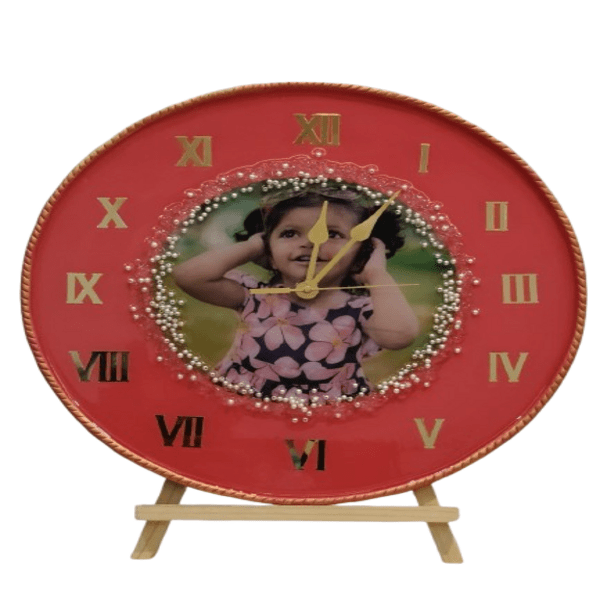 1650 Piece Description : A Handmade Resin Stand Clock Is A Functional Piece Of Art That Combines A Sturdy Base, Often Mdf Or Wood, With A Clock Face Crafted From Epoxy Resin. The Resin Can Be Colored, Embedded With Decorative Items Like Coastal Artifacts, Or Given Various Finishes, Such As A Glossy, Marbled, Or Agate-like Effect. Each Clock Is Individually And Carefully Handcrafted, Making It A Unique, Decorative, And Durable Piece. Location : Chhatisgarh, India