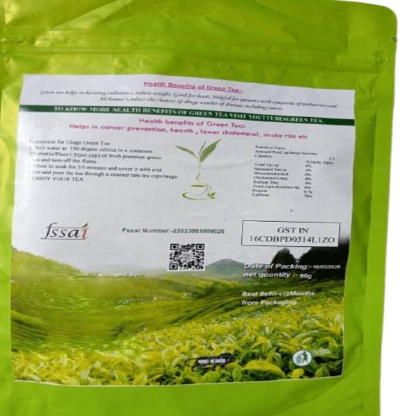 110 Packet Net Weight : 50 Gram Description : Green Tea Is An Unfermented Beverage From The Camellia Sinensis Plant, Characterized By Its Natural Green Color And Rich Antioxidant Content Due To Minimal Processing, Which Includes Steaming Or Pan-firing To Prevent Oxidation. It Is Globally Consumed For Its Diverse Flavors, Including Vegetal, Nutty, And Grassy Notes, And Is Known For Its Potential Health Benefits, Such As Antioxidant And Anti-inflammatory Properties, Though It Also Contains Caffeine. Location : Tripura, India