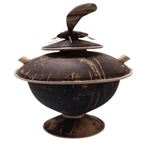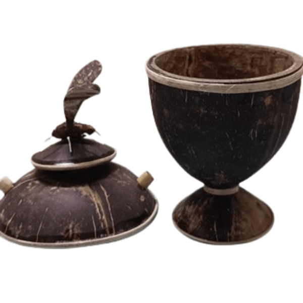 440 Piece Description : This Handcrafted Coconut Shell Container Embodies Sustainable Living And Artisanal Charm, Fashioned Entirely From The Repurposed, Hard Outer Shell Of A Coconut, Offering An Eco-friendly Alternative To Conventional Storage. Each Unique Piece, Meticulously Cleaned, Cut, Sanded, And Polished By Skilled Artisans, Features A Bowl-like Base And A Fitted Lid, Often Adorned With A Natural Handle Or Embellishment Like A Butterfly, Designed To Securely House Dry Goods Such As Spices Or Snacks While Also Serving As A Distinctive Decorative Element In Any Home. Beyond Its Functional Utility In Kitchen Storage Or Organization, Its Inherent Natural Beauty, With Varying Textures And Warm Brown Tones, Makes It A Celebrated Item That Champions Both Environmental Consciousness And Traditional Craftsmanship. Location : Assam, India