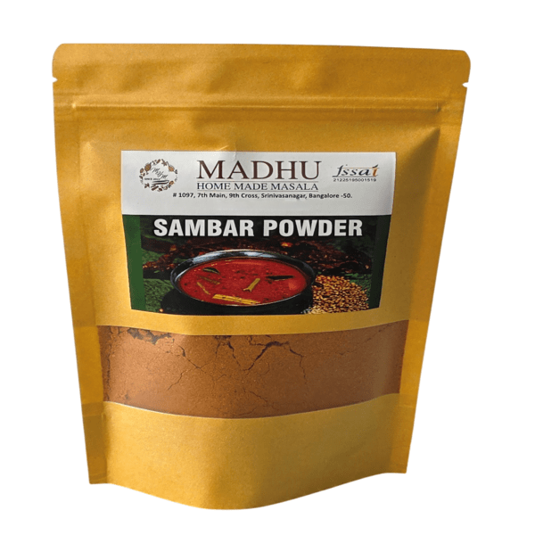 206 Packet Net Weight : 250 Gram Description : South Indian Sambar Powder – Authentic Homemade Taste Bring Home The Rich Flavors Of South India With Our Premium Sambar Powder, Carefully Crafted From A Traditional Blend Of Roasted Spices. This Aromatic Spice Mix Is The Secret Behind The Comforting Taste Of Authentic South Indian Sambar, A Wholesome Lentil-based Vegetable Stew Loved Across India. 1. Authentic Taste – Made With A Traditional South Indian Recipe Passed Down Through Generations. 2. Premium Quality Ingredients 3. No Preservatives Or Artificial Colors – 100% Natural, Ensuring Purity In Every Spoonful. 4. Versatile Use – Ideal For Preparing Sambar, Rasam, Vegetable Curries, And Lentil Soups. 5. Aromatic & Flavorful – Adds A Rich, Tangy, And Spicy Touch To Your Everyday Meals. 6. Simply Add 1–2 Tablespoons Of Sambar Powder To Boiled Lentils And Vegetables, Simmer, And Finish With A Tempering Of Curry Leaves And Mustard Seeds For A Delicious South Indian Meal. Location : Karnataka, India