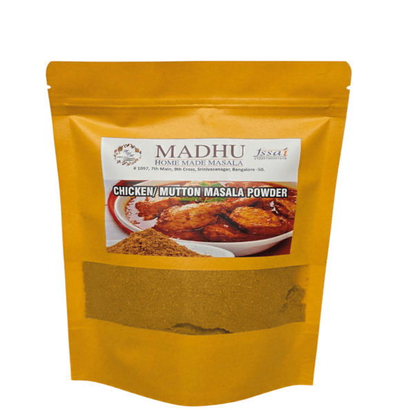 Cook flavorful curries with our Chicken/Mutton Masala Powder, a bold mix of roasted spices that enhances the taste of non-vegetarian dishes. Perfect for gravies, dry curries, and biryanis. Authentic South Indian-style non-veg masala with home made taste.