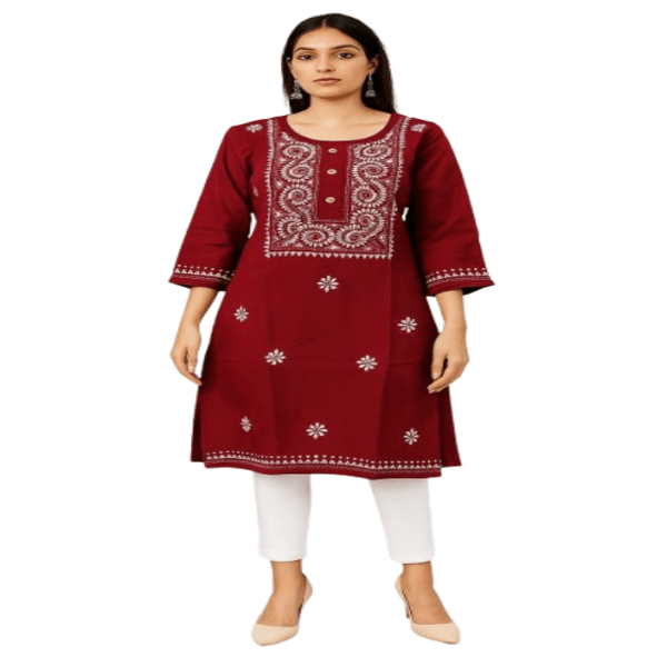 605 Piece Description : A Cotton Long Kurti Is A Comfortable, Lightweight, And Breathable Tunic Made From Soft Cotton Fabric, Extending To Or Beyond The Knee. It Is A Versatile Garment, Ideal For Daily Wear, Casual Outings, Or Semi-formal Occasions, Offering A Relaxed Fit That Allows For Unrestricted Movement. Long Kurtis Are Available In Various Styles, Colors, And Prints And Can Be Paired With Leggings, Pants, Or Jeans For Different Looks. Location : West Bengal, India