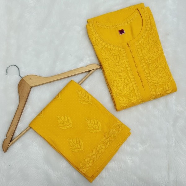 1595 Set Description : A Rayon Cotton Chikankari Kurti With Palazzo Set Is A Two-piece Outfit Featuring A Long Kurti (tunic) And A Matching Palazzo (wide-leg Pants), Both Made From Lightweight Rayon Cotton. The Kurti Is Adorned With Delicate, Hand-embroidered Chikankari Work, A Traditional Craft From Lucknow, Which Gives The Set A Blend Of Traditional And Modern Appeal. The Breathable Rayon Fabric Ensures Comfort For All-day Wear, Making It Suitable For Both Casual And Festive Occasions. Location : Uttar Pradesh, India