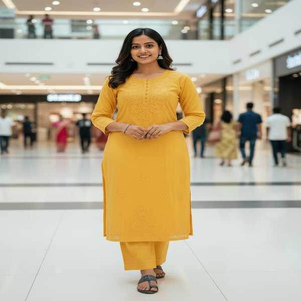 1595 Set Description : A Rayon Cotton Chikankari Kurti With Palazzo Set Is A Two-piece Outfit Featuring A Long Kurti (tunic) And A Matching Palazzo (wide-leg Pants), Both Made From Lightweight Rayon Cotton. The Kurti Is Adorned With Delicate, Hand-embroidered Chikankari Work, A Traditional Craft From Lucknow, Which Gives The Set A Blend Of Traditional And Modern Appeal. The Breathable Rayon Fabric Ensures Comfort For All-day Wear, Making It Suitable For Both Casual And Festive Occasions. Location : Uttar Pradesh, India