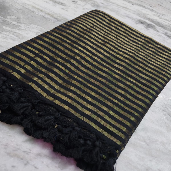561 Piece Description : A Mul Cotton Saree With Zari Stripes Is A Timelessly Elegant Garment Crafted From Exceptionally Soft, Lightweight, And Breathable Mulmul Cotton. This Fine, Airy Fabric Is Traditionally Handwoven And Feels Incredibly Comfortable Against The Skin, Making It Ideal For Warm Climates. Subtle Metallic Zari Threads Are Woven Into The Fabric To Create Refined, Shimmering Stripes That Add A Touch Of Sophistication Without Compromising The Sarees Minimalist Grace. Its Effortless And Flowy Drape, Along With The Combination Of Artisanal Craftsmanship And Subtle Shimmer, Makes It A Versatile Choice Suitable For Both Casual Daywear And Festive Occasions. Location : West Bengal, India