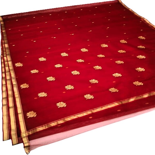 6050 Piece Description : A Chanderi Saree Is A Traditional Indian Handloom Saree From Chanderi, Madhya Pradesh, Known For Its Lightweight, Sheer Fabric With A Subtle Sheen And Delicate Gold Or Silver (zari) Motifs. They Are Made From Pure Silk, Silk-cotton Blends (sico), Or Pure Cotton, Offering A Blend Of Luxuriousness And Breathability. These Sarees Are Celebrated For Their Airy Drape And Are Often Decorated With Motifs Like Peacocks, Florals, And Geometric Patterns. Location : Madhya Pradesh, India