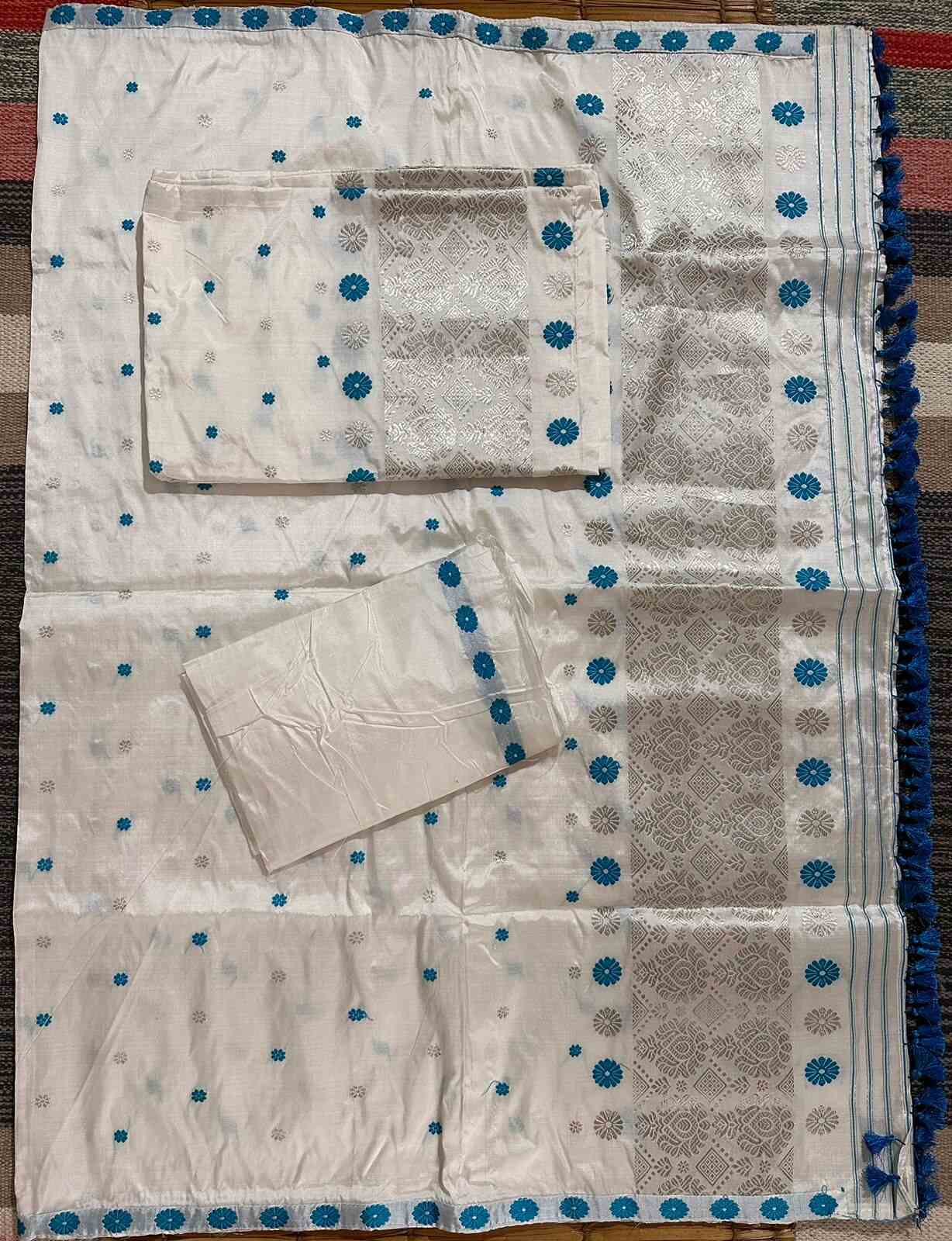 15180 Set Description : Assamese Mekhela Sador Chador Soft Fabric With Beautiful Traditional Design Each Piece Is Elegantly Crafted And Will Surely Add To Your Wardrobe. Pair This Piece With Heels Or Flats For A Graceful Look. Beautiful Design Blouse Comfortable To Wear. Gracefully Woven By Skilled Artisans Using High-quality Threads , This Chador Makes A Perfect Addition To The Wardrobe For All Occasions. Location : Assam, India