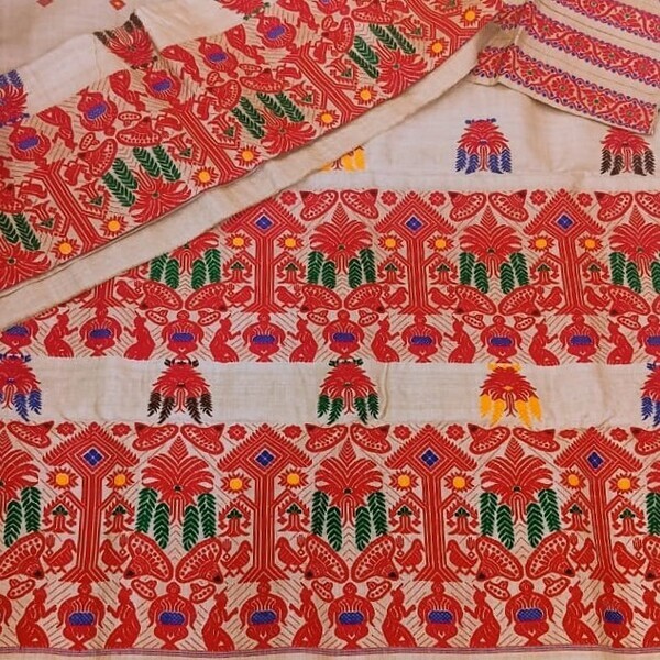 44000 Set Description : A Pure Muga Mekhela Chadar Is A Traditional, Two-piece Assamese Garment For Women, Handcrafted From 100% Muga Silk, Which Is Naturally Golden And Known For Its Durability. The Outfit Consists Of A Mekhela, A Cylindrical Skirt Worn On The Bottom, And A Chadar, A Long Drape Worn Over The Upper Body. It Is Prized For Its Luxurious Feel, Natural Sheen, And Intricate, Traditional Motifs. Location : Assam, India