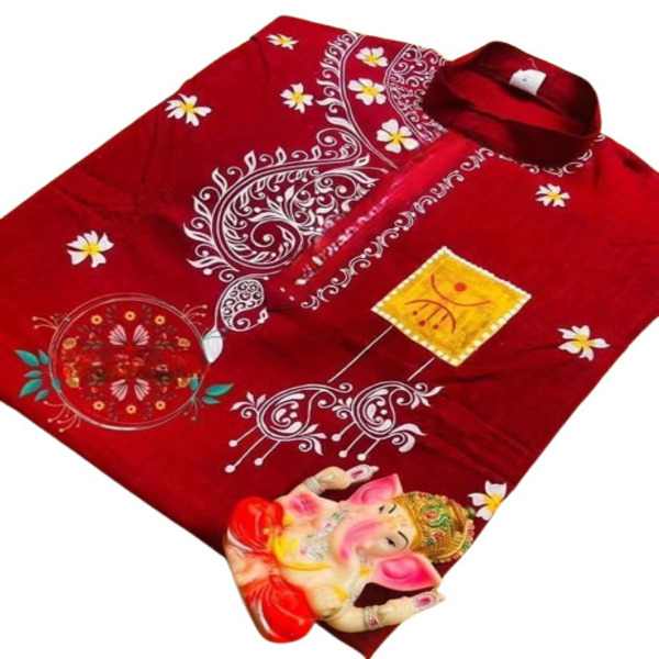 715 Piece Description : A Kalka Punjabi Kurta Is A Mens Long, Loose-fitting Tunic Made Of Fabric Like Cotton Or Khadi Cotton, Often Handcrafted With A Kalka Or Paisley-like Embroidery Or Hand-painted Design. The Kalka Refers To The Intricate Pattern, Which Are Hand-painted Or Embroidered, Making It A Decorative, Festive, Or Formal Ethnic Wear Option. Location : West Bengal, India