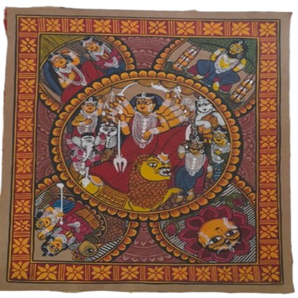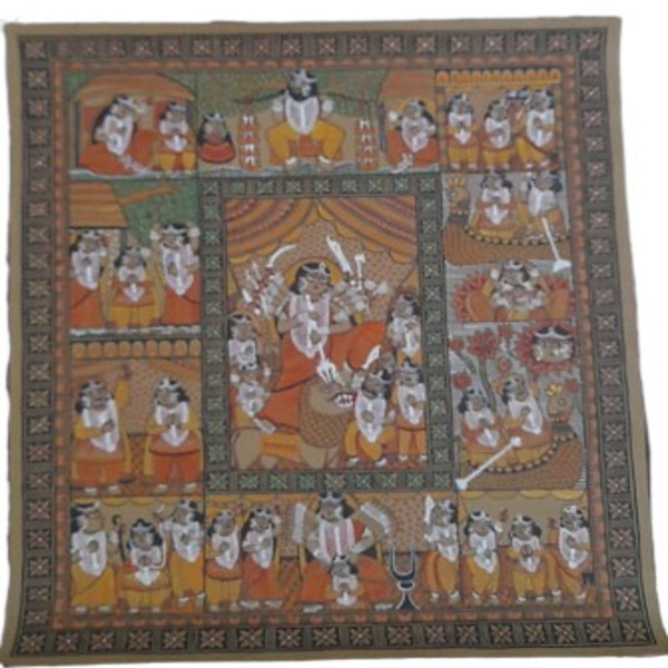 1650 Piece Description : Pattachitra Is A Traditional Indian Scroll Painting Art Form From Odisha And West Bengal, Characterized By Intricate Details, Natural Colours, And Mythological Narratives Like The Tales Of Hindu Deities. The Word Pattachitra Comes From The Sanskrit Words Patta (cloth) And Chitra (picture). Paintings Are Created On A Cloth Canvas Prepared With A Chalk And Tamarind Paste Mixture And Are Often Framed With Floral Borders. Location : West Bengal, India