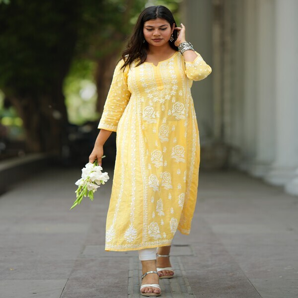5460 Piece Description : A Chikankari Kurti Is A Traditional Indian Tunic Known For Its Delicate Hand Embroidery, Originating From Lucknow. It Features Intricate, Often Floral Or Paisley, Patterns Created With A Variety Of Stitches And Is Typically Made On Fabrics Like Cotton, Muslin, Or Georgette. The Style Is Recognized For Its Timeless Elegance, Versatility For Both Casual And Formal Wear, And A History Of Using White Thread On White Fabric, Though Coloured Threads And Coloured Fabrics Are Also Used Today. Location : Uttar Pradesh, India