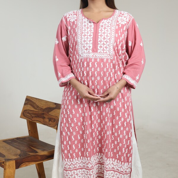 2750 Piece Description : A Chikankari Kurta Featuring Butis (small Embroidered Motifs) Is A Traditional Indian Garment Celebrated For Its Delicate Handwork. The Term Buti Refers To Individual, Scattered Designs, Typically Depicting Small Floral Elements Like Jasmine Or Rose Petals, Leaves, Or Tiny Dots, Rather Than A Dense, Continuous Pattern. These Motifs Are Created Using Classic Lucknowi Chikankari Stitches Such As Bakhiya (shadow Work), Phanda (knot Work), Or Taipchi (running Stitch), Adding A Subtle, Elegant Texture To The Fabric. The Butis Can Be Distributed All Over The Kurta For A Balanced Look Or Concentrated Around The Neckline, Sleeves, And Hem. Traditionally Made From Fine White Cotton Or Muslin With Matching White Thread, Modern Versions Use Diverse Fabrics Like Georgette Or Rayon And Come In Various Colours, Making The Buti-patterned Chikankari Kurta A Versatile Piece That Embodies Subtle, Timeless Grace Suitable For Both Everyday Elegance And Special Occasions. Location : Uttar Pradesh, India