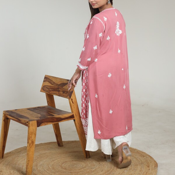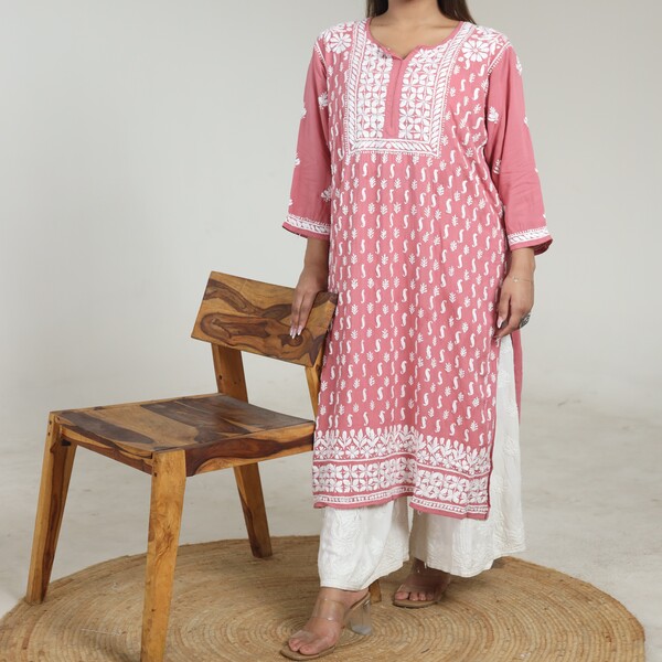2750 Piece Description : A Chikankari Kurta Featuring Butis (small Embroidered Motifs) Is A Traditional Indian Garment Celebrated For Its Delicate Handwork. The Term Buti Refers To Individual, Scattered Designs, Typically Depicting Small Floral Elements Like Jasmine Or Rose Petals, Leaves, Or Tiny Dots, Rather Than A Dense, Continuous Pattern. These Motifs Are Created Using Classic Lucknowi Chikankari Stitches Such As Bakhiya (shadow Work), Phanda (knot Work), Or Taipchi (running Stitch), Adding A Subtle, Elegant Texture To The Fabric. The Butis Can Be Distributed All Over The Kurta For A Balanced Look Or Concentrated Around The Neckline, Sleeves, And Hem. Traditionally Made From Fine White Cotton Or Muslin With Matching White Thread, Modern Versions Use Diverse Fabrics Like Georgette Or Rayon And Come In Various Colours, Making The Buti-patterned Chikankari Kurta A Versatile Piece That Embodies Subtle, Timeless Grace Suitable For Both Everyday Elegance And Special Occasions. Location : Uttar Pradesh, India