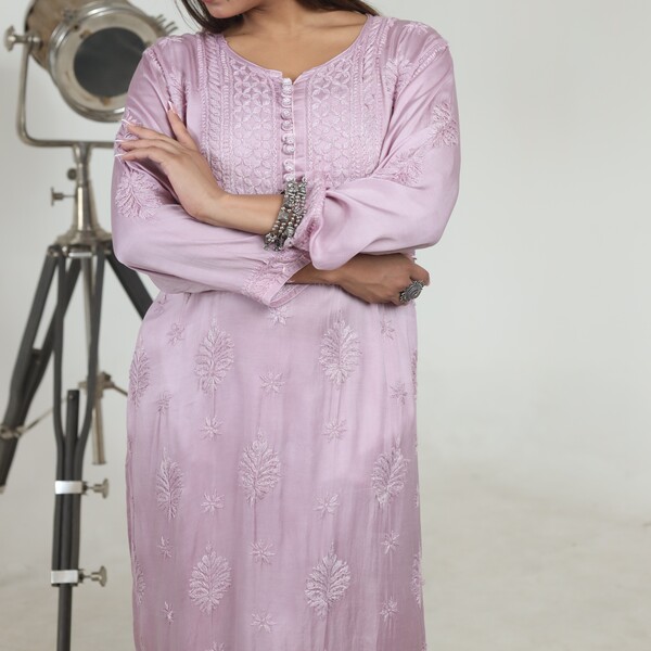 4675 Piece Description : A Chikankari Muslin Kurti Is A Soft, Lightweight, And Breathable Traditional Garment Featuring Intricate, Handcrafted Embroidery (chikankari) On Fine Muslin Fabric. The Embroidery Often Consists Of Delicate Floral Or Traditional Motifs, With Stitching On The Yoke, Body, Hem, And Sleeves, Making It A Comfortable Yet Elegant Piece Suitable For Both Casual And Festive Wear. Location : Uttar Pradesh, India