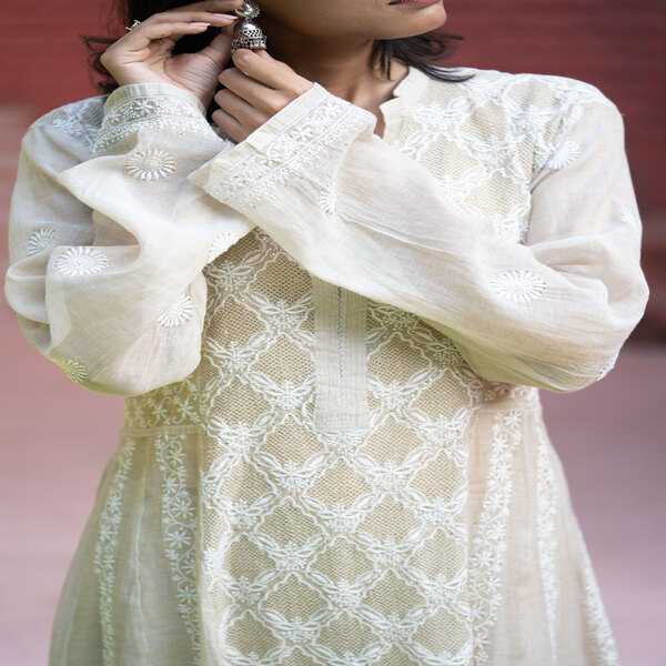 Home > Handlooms & Handcrafted > Womens Wear > Chikankari Begum Gold Tissue Anarkali