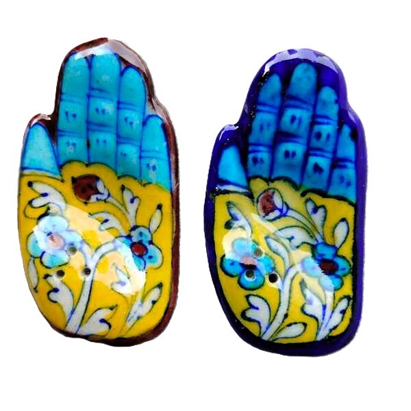 A blue art pottery incense stick holder is a functional yet decorative handmade ceramic piece, traditionally associated with the vibrant Jaipur Blue Pottery of Rajasthan, India. It is made from a special dough of quartz stone powder, powdered glass, and other natural ingredients, rather than clay, which gives it a distinctive non-porous and durable quality. The holder is characterized by its bright, eye-catching cobalt blue glaze, often hand-painted with intricate Turko-Persian or Mughal-inspired motifs like geometric patterns or stylized flowers, and finished with a glossy sheen. Designed to hold incense sticks securely, it also serves as an elegant ash catcher and a decorative accent for home décor, yoga, or meditation spaces. Location : Rajasthan, India