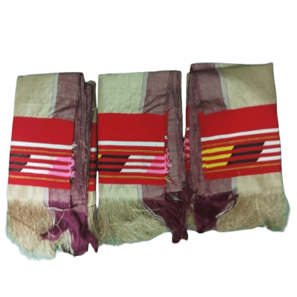 5940 Set Description : A Pure Toss Mekhela Chadar Is A Traditional Assamese Two-piece Garment For Women, Made From 100% Tussar Silk, Known For Its Natural Golden Sheen And Rich Texture. The Lower Piece, The Mekhela, Is A Cylindrical Cloth Draped Around The Waist, While The Chadar Is A Long Piece Of Fabric Tucked Into The Mekhela And Draped Over The Upper Body. The Set Includes The Chadar, Mekhela, And An Unstitched Blouse Piece. Location : Assam, India
