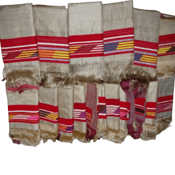 5940 Set Description : A Pure Toss Mekhela Chadar Is A Traditional Assamese Two-piece Garment For Women, Made From 100% Tussar Silk, Known For Its Natural Golden Sheen And Rich Texture. The Lower Piece, The Mekhela, Is A Cylindrical Cloth Draped Around The Waist, While The Chadar Is A Long Piece Of Fabric Tucked Into The Mekhela And Draped Over The Upper Body. The Set Includes The Chadar, Mekhela, And An Unstitched Blouse Piece. Location : Assam, India