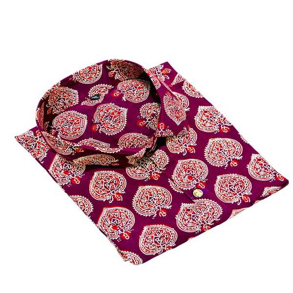 550 Piece Description : A Hand Block Printed Cotton Shirt Is Made From Comfortable, Natural Cotton Fabric Decorated With Designs Carved Onto Wooden Blocks By Skilled Artisans. Each Block Is Used To Press A Specific Color Onto The Fabric With Precision, Creating Intricate, Unique Patterns With Slight Irregularities That Highlight The Artisanal, Handmade Nature Of The Shirt. These Shirts Are A Blend Of Traditional Craftsmanship And Modern Style, Often Featuring Traditional Motifs, And Are Prized For Their Breathability And Lightweight Feel. Location : Rajasthan, India