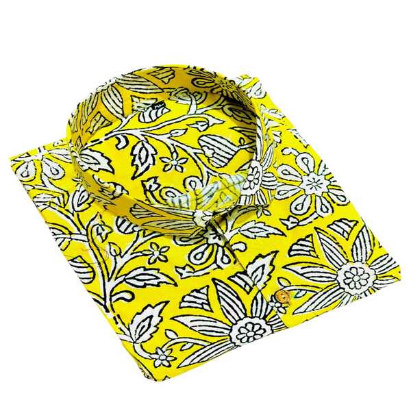 550 Piece Description : A Hand Block Printed Cotton Shirt Is Made From Comfortable, Natural Cotton Fabric Decorated With Designs Carved Onto Wooden Blocks By Skilled Artisans. Each Block Is Used To Press A Specific Color Onto The Fabric With Precision, Creating Intricate, Unique Patterns With Slight Irregularities That Highlight The Artisanal, Handmade Nature Of The Shirt. These Shirts Are A Blend Of Traditional Craftsmanship And Modern Style, Often Featuring Traditional Motifs, And Are Prized For Their Breathability And Lightweight Feel. Location : Rajasthan, India