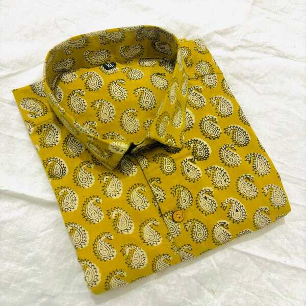 550 Piece Description : A Hand Block Printed Cotton Shirt Is Made From Comfortable, Natural Cotton Fabric Decorated With Designs Carved Onto Wooden Blocks By Skilled Artisans. Each Block Is Used To Press A Specific Color Onto The Fabric With Precision, Creating Intricate, Unique Patterns With Slight Irregularities That Highlight The Artisanal, Handmade Nature Of The Shirt. These Shirts Are A Blend Of Traditional Craftsmanship And Modern Style, Often Featuring Traditional Motifs, And Are Prized For Their Breathability And Lightweight Feel. Location : Rajasthan, India