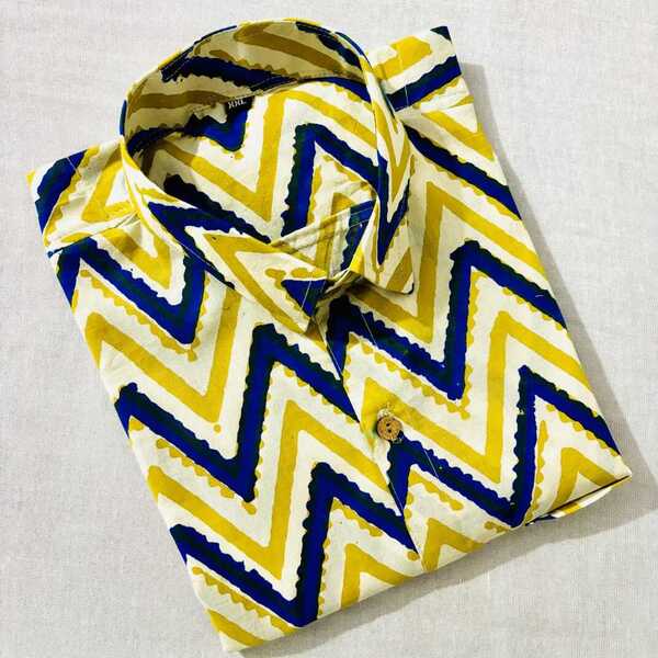 550 Piece Description : A Hand Block Printed Cotton Shirt Is Made From Comfortable, Natural Cotton Fabric Decorated With Designs Carved Onto Wooden Blocks By Skilled Artisans. Each Block Is Used To Press A Specific Color Onto The Fabric With Precision, Creating Intricate, Unique Patterns With Slight Irregularities That Highlight The Artisanal, Handmade Nature Of The Shirt. These Shirts Are A Blend Of Traditional Craftsmanship And Modern Style, Often Featuring Traditional Motifs, And Are Prized For Their Breathability And Lightweight Feel. Location : Rajasthan, India