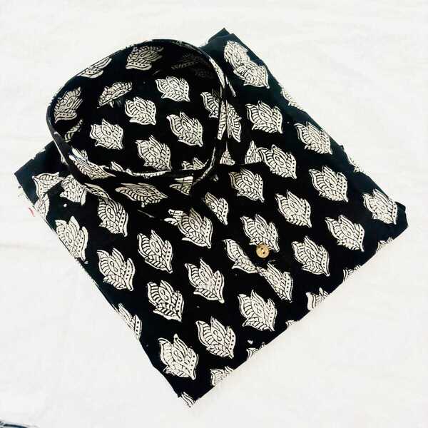 550 Piece Description : A Hand Block Printed Cotton Shirt Is Made From Comfortable, Natural Cotton Fabric Decorated With Designs Carved Onto Wooden Blocks By Skilled Artisans. Each Block Is Used To Press A Specific Color Onto The Fabric With Precision, Creating Intricate, Unique Patterns With Slight Irregularities That Highlight The Artisanal, Handmade Nature Of The Shirt. These Shirts Are A Blend Of Traditional Craftsmanship And Modern Style, Often Featuring Traditional Motifs, And Are Prized For Their Breathability And Lightweight Feel. Location : Rajasthan, India