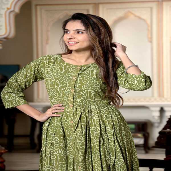 Home > Handlooms & Handcrafted > Womens Wear > Bagru Hand Block Printed Long One-piece Dress