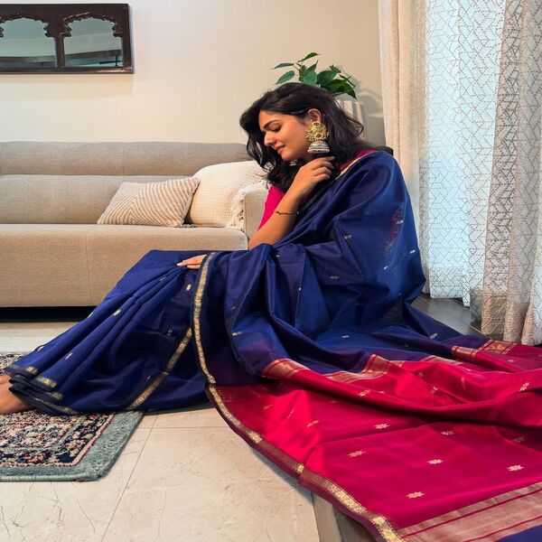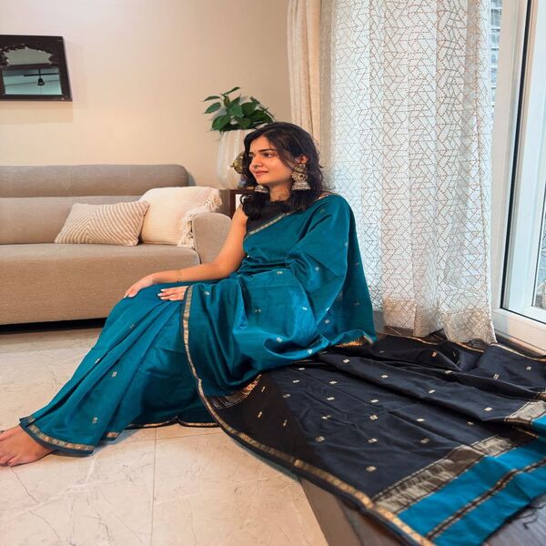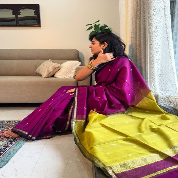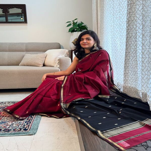 4180 Piece Description : A Maheshwari Silk By Cotton Weave Saree Is A Lightweight And Elegant Handloom Saree From Maheshwar, India, Made From A Blend Of Silk And Cotton Yarns For A Soft, Lustrous Feel. It Is Known For Its Reversible Border, Intricate Geometric Patterns, And Motifs Inspired By Architecture And Nature, Often Enhanced With Zari Work. The Combination Of Cotton And Silk Makes The Saree Both Comfortable And Elegant, Suitable For Various Occasions. Location : Madhya Pradesh, India