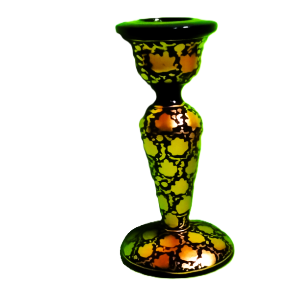 A paper Mache candle stand is a handcrafted decorative item made by layering paper strips and adhesive over a form, resulting in a lightweight yet durable piece. These stands are often hand-painted with intricate designs, given a protective glossy finish, and can be customized in various shapes and colours to serve as both a functional candle holder and an artistic accent for home décor. Location : Jammu & Kashmir, India