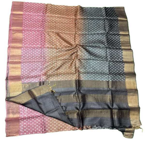 5850 Piece Description : A Pure Tussar Ghicha Double Colour Contrast Silk Saree Is A Highly Valued Handloom Product Known For Its Unique Blend Of Pure Tussar Silks Natural Golden Sheen And Ghicha Silks Distinct, Slightly Coarse, Uneven Texture. The Double Colour Contrast Design Features A Primary Body Colour That Is Strikingly Contrasted By A Second, Often Vibrant, Colour Used For The Decorative Borders And The Pallu, Creating An Eye-catching Visual Effect. These Sarees Are Prized For Their Lightweight And Breathable Nature, Making Them Comfortable For Extended Wear, While The Rustic Yet Elegant Aesthetic, Often Certified By The Silk Mark, Offers A Perfect Fusion Of Traditional Craftsmanship And Modern Style. Location : Odisha, India