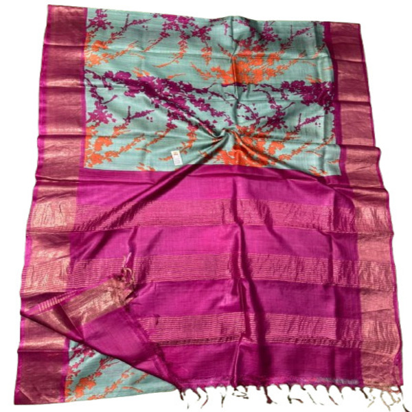 5850 Piece Description : A Pure Tussar Ghicha Double Colour Contrast Silk Saree Is A Highly Valued Handloom Product Known For Its Unique Blend Of Pure Tussar Silks Natural Golden Sheen And Ghicha Silks Distinct, Slightly Coarse, Uneven Texture. The Double Colour Contrast Design Features A Primary Body Colour That Is Strikingly Contrasted By A Second, Often Vibrant, Colour Used For The Decorative Borders And The Pallu, Creating An Eye-catching Visual Effect. These Sarees Are Prized For Their Lightweight And Breathable Nature, Making Them Comfortable For Extended Wear, While The Rustic Yet Elegant Aesthetic, Often Certified By The Silk Mark, Offers A Perfect Fusion Of Traditional Craftsmanship And Modern Style. Location : Odisha, India