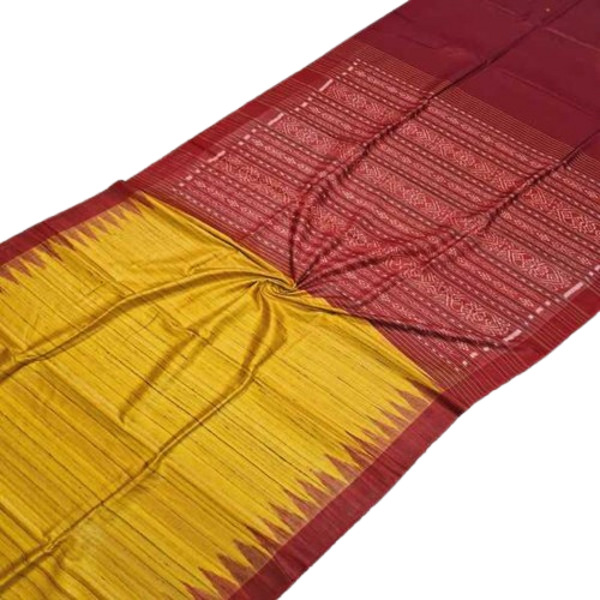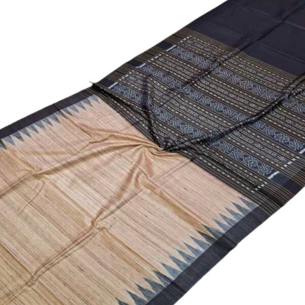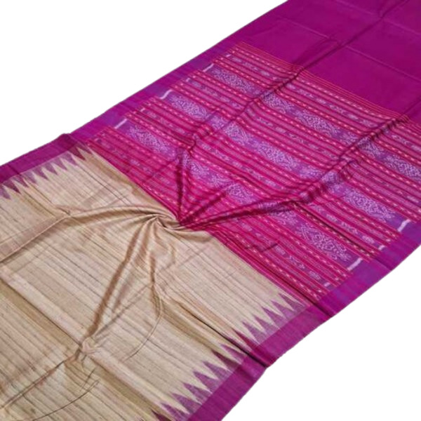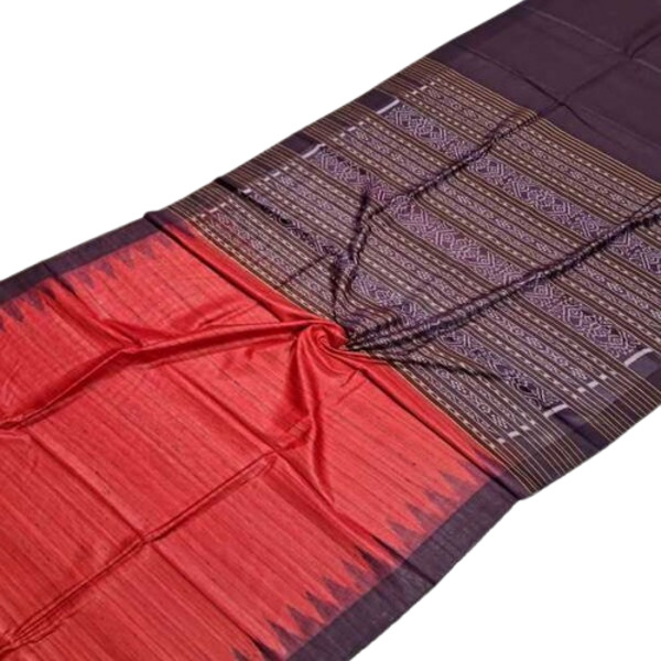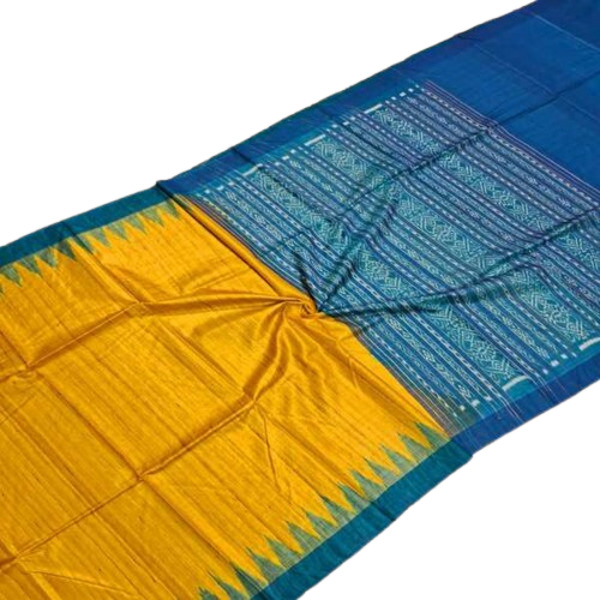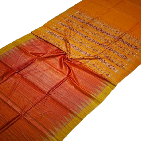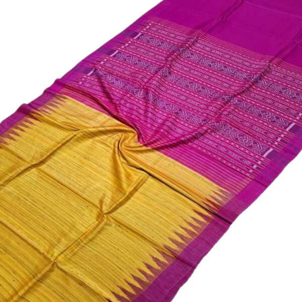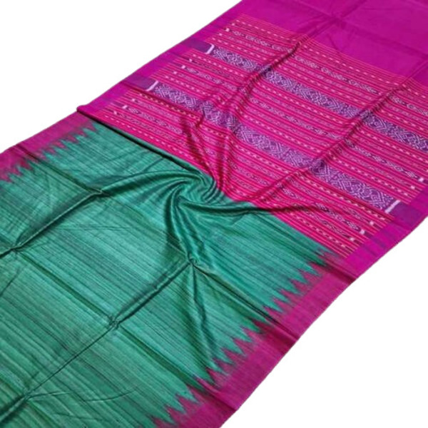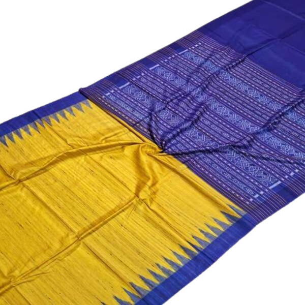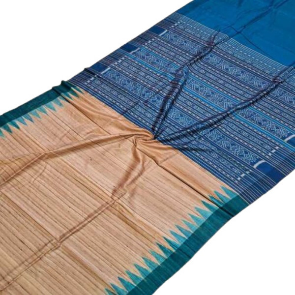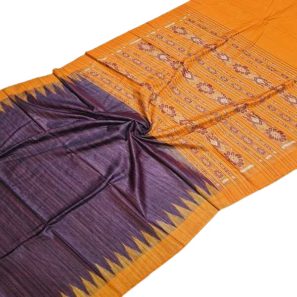 5850 Piece Description : A Pure Tussar Ghicha Double Colour Contrast Silk Saree Is A Highly Valued Handloom Product Known For Its Unique Blend Of Pure Tussar Silks Natural Golden Sheen And Ghicha Silks Distinct, Slightly Coarse, Uneven Texture. The Double Colour Contrast Design Features A Primary Body Colour That Is Strikingly Contrasted By A Second, Often Vibrant, Colour Used For The Decorative Borders And The Pallu, Creating An Eye-catching Visual Effect. These Sarees Are Prized For Their Lightweight And Breathable Nature, Making Them Comfortable For Extended Wear, While The Rustic Yet Elegant Aesthetic, Often Certified By The Silk Mark, Offers A Perfect Fusion Of Traditional Craftsmanship And Modern Style. Location : Odisha, India