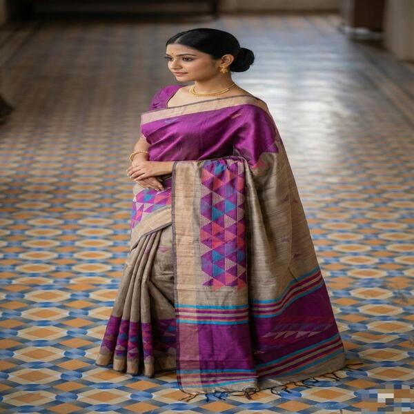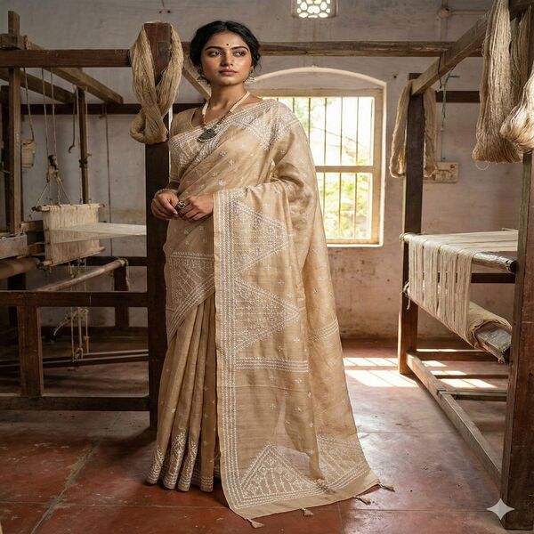 5850 Piece Description : A Premium Tussar Pure Desi Tissue Saree Is A Luxurious, Handwoven Silk Drape Known For Its Earthy Texture, Natural Golden Sheen, And Airy Lightness, Often Featuring Rich Zari Work, Intricate Woven Motifs (like Geometric Or Madhubani Art) Or Delicate Mirror/cut Work, Making It Ideal For Festive Wear, Offering Both Traditional Elegance And Comfort With An Opulent, Shimmering Finish. Each Piece Reflects Rich Cultural Heritage, Often From Regions Like Odisha Or West Bengal, Making It A Unique Work Of Art. Location : Bihar, India