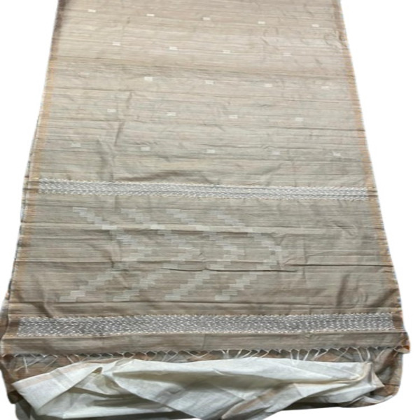 A pure Bhagalpuri Tussar silk saree with Kantha work is an exquisite example of heritage Indian textiles, blending the raw, textured elegance of wild silk with the detailed artistry of hand-stitched embroidery. The Bhagalpuri Tussar silk base is renowned for its organic, earthy tones, natural golden sheen, and durable yet breathable quality, offering a luxurious drape that softens over time. This unique fabric serves as a canvas for traditional Kantha work, a meticulous hand-stitching technique that employs simple running stitches to form intricate motifs, often depicting florals, birds, or geometric patterns that flow across the pallu and borders. The resulting garment is a celebration of craftsmanship, combining a rich, natural fibre with sophisticated, labour-intensive hand-embroidery to create a piece that is both traditional and elegantly contemporary. Location : Bihar, India