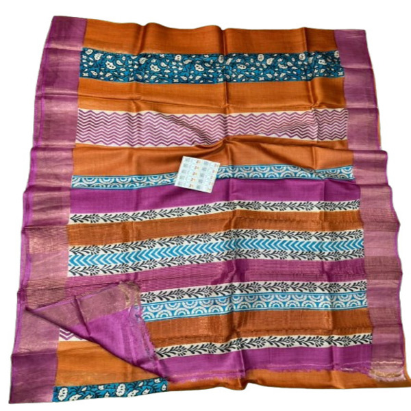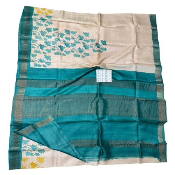 3960 Piece Description : A Pure Tussar Hand Block Printed Saree Is A Luxurious And Artisanal Garment That Combines The Rustic Elegance Of Wild Silk With The Intricate Beauty Of Traditional Handcrafted Motifs. Tussar Silk Is Highly Prized For Its Unique Natural Golden Sheen, Slightly Coarse Slub Texture, And Breathability, Offering Both Comfort And A Sophisticated Drape That Becomes Softer Over Time. The Hand Block Printing Process Involves Skilled Artisans Manually Stamping Delicate Or Bold Patterns Onto The Fabric Using Carved Wooden Blocks, Resulting In One-of-a-kind Designs—often Featuring Floral, Paisley, Or Geometric Motifs—where Minor Variations In The Print Serve As Authentic Hallmarks Of Traditional Craftsmanship. The Final Product Is A Timeless Statement Piece That Perfectly Balances Raw, Organic Texture With Refined, Intricate Artistry. Location : West Bengal, India