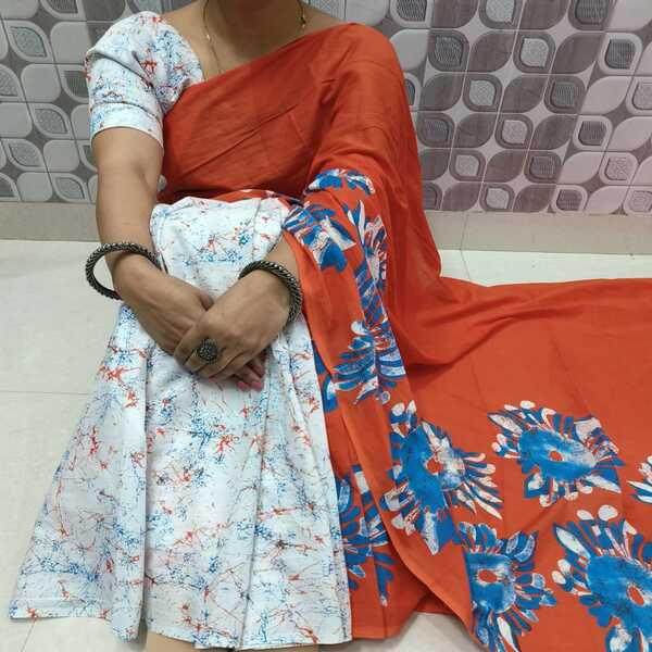 Home > Handlooms & Handcrafted > Womens Wear > Bagru Hand Block Printed Cotton Mulmul Saree