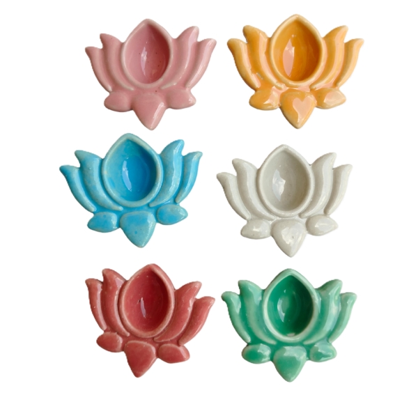 Blue art pottery diyas are handcrafted decorative lamps from Jaipur, Rajasthan, made from a unique, clay-free mixture of ground quartz stone, glass, and natural ingredients, painted with traditional cobalt blue designs. They are known for their intricate, traditional patterns, vibrant colours, and durable, glossy finish, making them perfect for festivals like Diwali or for home décor. Location : Rajasthan, India