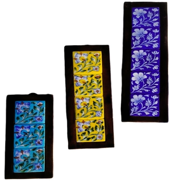 1485 Piece Description : A Blue Art Pottery Tile Wall Hanging Is A Decorative Object Originating From Jaipur, India, That Is Prized For Its Intricate, Handcrafted Turko-persian Designs And Signature Vibrant Cobalt-blue Glaze. Unlike Conventional Pottery, This Unique Art Form Is Crafted Without Clay, Using A Special Dough Made From Quartz Stone Powder, Powdered Glass, And Other Natural Materials. After Being Moulded, Hand-painted With Detailed Motifs, And Glazed, The Tiles Are Fired At A Low Temperature To Create A Distinctive, Durable, And Lustrous Finish. The Finished Wall Hangings Can Consist Of Single Tiles Or Larger, Framed Murals Composed Of Multiple Tiles Featuring Floral, Animal, Or Geometric Patterns. Location : Rajasthan, India