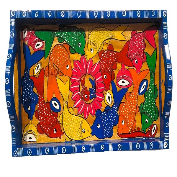 1320 Piece Description : A Blue Art Pottery Tile Wooden Tray Is A Handcrafted Item That Combines The Warmth Of A Natural Wooden Base With The Striking Beauty Of Traditional Blue Pottery Tiles, Which Are Typically Made From A Mixture Of Quartz Stone Powder And Powdered Glass. The Tiles, Known For Their Vibrant Cobalt Blue And White Glazes, Usually Feature Intricate, Hand-painted Floral Or Geometric Patterns That Create A Beautiful Contrast Against The Wood Frame. This Fusion Of Materials Results In A Durable And Food-safe Decorative Serving Tray That Is Both A Functional Household Item And A Unique Piece Of Cultural Artistry. Location : Rajasthan, India