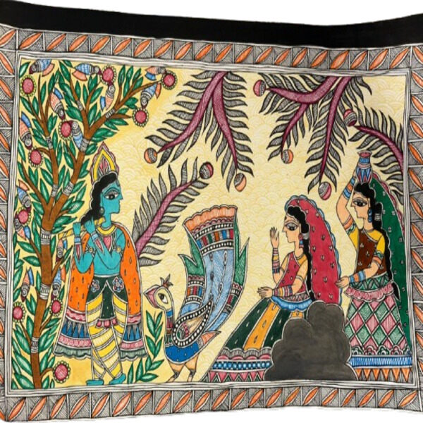 6050 Piece Description : A Madhubani Painting Of The Tree Of Life Is A Vibrant, Intricate Depiction Of A Foundational Symbol In Mithila Folk Art, Representing Growth, Interconnectedness, And Harmony With Nature. The Central Motif Features A Strong Tree Trunk And Flourishing Branches That Dominate The Composition, Often Filled With Complex Patterns And Surrounded By Various Birds, Animals, And Floral Elements, Symbolizing A Balanced Ecosystem And Abundance. Characterized By Its Fine, Double-lined Borders And Geometric Fillers (a Style Known For Leaving No Empty Space), The Artwork Uses Vivid, Often Natural Colours To Convey A Narrative Of Fertility, Prosperity, And The Deep Spiritual Connection Between The Community And Their Environment, Serving As Both A Beautiful Decoration And A Meaningful Cultural Statement. Location : Bihar, India