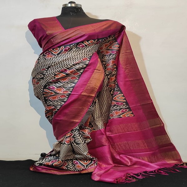 2860 Piece Description : A Hand Block Printed Ajrakh Modal Saree Is A Hand-crafted Textile Featuring Intricate, Geometric Or Floral Patterns, Created Using Traditional Wooden Blocks And Natural Dyes On A Fabric Blend Of Modal And Rayon-cotton. The Process Involves Layering Blocks, With Each Colour And Pattern Applied Separately, And Requires Multiple Rounds Of Printing And Sun-drying. The Resulting Saree Is Known For Its Soft Drape, Unique Earthy And Bold Aesthetic, And The Unique Variations That Come From Being Entirely Handmade. Due To The Handmade Nature Of The Process, Each Saree Has Slight Variations, Making It A Unique Piece Of Wearable Art. Location : Gujarat, India