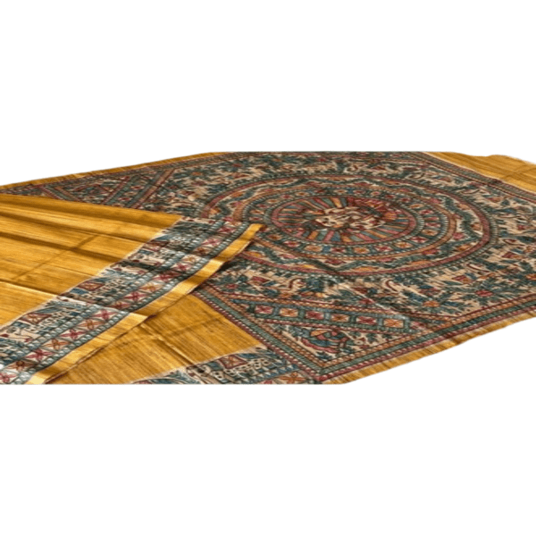 8250 Piece Description : A Hand-painted Pure Tussar Silk Saree Is An Exquisite Piece Of Wearable Art, Recognized For Its Inherent Natural Golden Sheen, Slightly Coarse Yet Supple Texture, And Rich Cultural Designs Applied By Hand. Sourced From The Wild Silk Of India, The Fabric Is Durable And Drapes Elegantly, Becoming Softer With Wear. The True Value Lies In The Intricate, Unique Hand-painted Motifs—ranging From Traditional Mythological Figures And Nature-inspired Themes To Complex Geometric Patterns—often Utilizing Regional Techniques Like Madhubani Or Kalamkari Artistry With Natural Dyes. This Meticulous Craftsmanship, Ensuring No Two Sarees Are Identical, Makes It A Lightweight, Breathable, And Unique Garment Suitable For Various Occasions, Typically Requiring Professional Dry Cleaning To Maintain Its Integrity. Location : Jharkhand, India